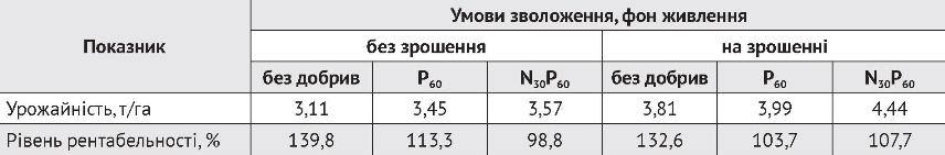 При вирощуванні гороху при комплексному застосуванні зрошення та добрив у дозі N30P60 рівень чистого прибутку збільшився на 1639,0 грн/га, а рівень рентабельності — на 8,9% порівняно з вирощуванням без зрошення на цьому ж фоні живлення.