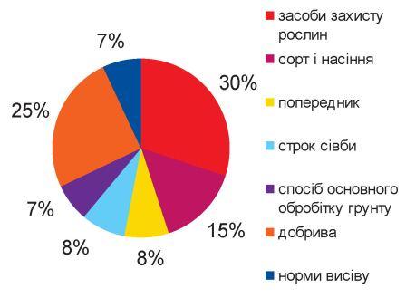 Встановлено, що найбільш значний вплив на урожайність рису мають такі агротехнічні фактори, як засоби захисту рослин та добрива, що становить близько 30% та 25% відповідно (графік).