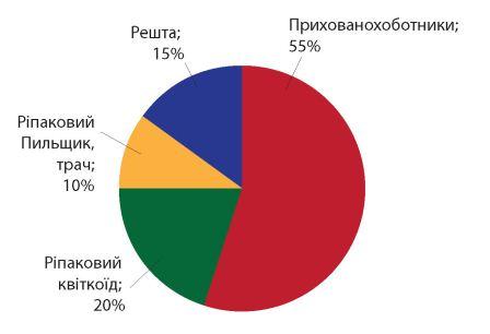 Таким чином, внаслідок різкого розширення посівних площ під ріпаком (1,5 млн га) створено харчову базу і великий сприятливий ареал для лавиноподібного розвитку шкідників. За даними чеських дослідників, саме прихованохоботники можуть наносити найбільшу шкоду ріпаку (рис. 1).