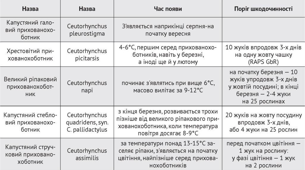 Таблиця. Контроль за прихованохоботниками на ріпаку
