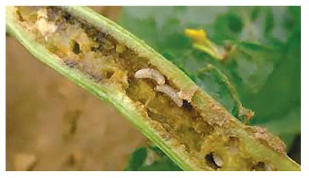 Засоби захисту: Обприскувати під час опадання пелюсток з квіток і утворенні перших стручків. При потребі повторно обприскати через 7-10 днів: Маврік, Біскайя, Моспілан.