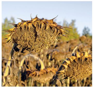 Несприятливі для збирання соняшнику погодні умови й неодночасне достигання насіння можуть внести свої корективи щодо збору врожаю цієї культури. Основним показником початку збирання врожаю соняшнику є вологість насіння. Господарства, які мають техніку для сушіння чи здаватимуть соняшник на елеватор, збирання можуть розпочинати за вологості насіння 14-16%. Слід зазначити, що надійне зберігання насіння соняшнику забезпечується за вологості не більше 8%, тому збирання слід починати, коли його вологість становить не більше 10%. Десикацію проводять під час фази початок побуріння кошиків за 11 діб до збирання врожаю та за вологості насіння 25-30%. Використовують рекомендовані гербіциди та десиканти. Обмолот починають через 7-10 днів після десикації за побуріння 75-85% кошиків і вологості насіння у межах 12-14%. Десикація також забезпечує припинення розвитку білої, сірої гнилей та інших хвороб на кошиках і насінні, у тому числі і в дощову погоду.