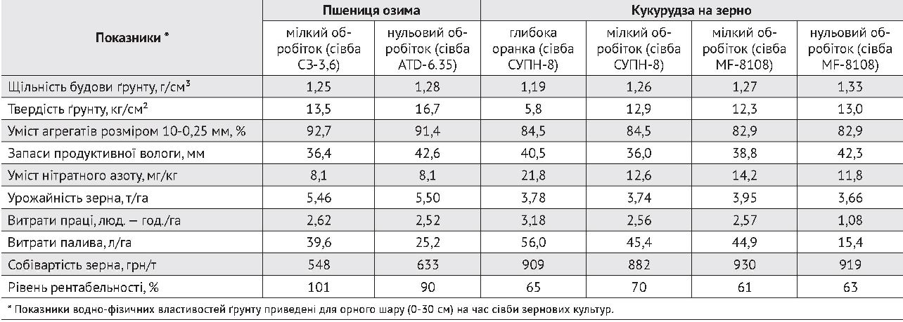 Таким чином, ефективність нульового обробітку ґрунту великою мірою залежить від біології культури, тривалості застосування у сівозміні та системи хімічного захисту рослин. Більш придатною для прямої сівби виявилась пшениця озима, менше — кукурудза при вирощуванні її на дворічному нульовому агрофоні.