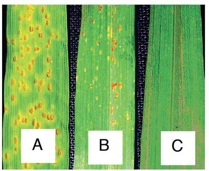 Фото 1. Вплив гліфосату на розвиток листової іржі (P. triticina) в GR пшениці