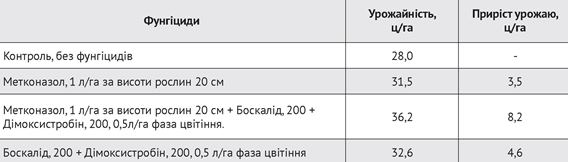Таблиця 2. Ефективність фунгіцидного захисту на ярому ріпаку на фоні N180Р110К180