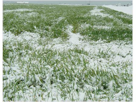 Цього року складаються досить несприятливі умови для вирощування озимої пшениці. Через осінню посуху пшениці посіяно значно менше, ніж було заплановано. Майже на половині площ сходи з’явились пізно, рослини відстають у розвитку, посіви зріджені. Та завдяки тривалій осінній вегетації, яка продовжувалася на місяць довше, ніж звичайно (до кінця грудня), рослини дещо зміцніли, створили по 3-4 листочки. Проте такі посіви залишаються слаборозвинені. Ще близько 30-35% посівів перебувають у задовільному стані, рослини розкущились, мають 1,5-2,0 пагони і вузлові корені. Менше площ, ніж у минулому році, де посіви добре розвинені і мають високий потенціал продуктивності (рис. 1 і 2).