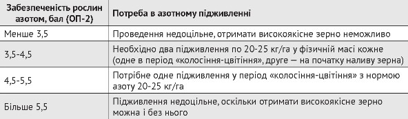 Ефективність дії позакореневого підживлення рослин у фазі колосіння перш за все залежатиме від вмісту азоту у вегетативних частинах рослин. Якщо він буде низьким, то позакореневе підживлення виявиться цілком неефективним щодо поліпшення якісних показників зерна (табл. 3).