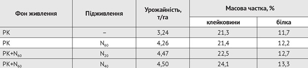 Таблиця 1. Дія весняно-літніх підживлень азотом на