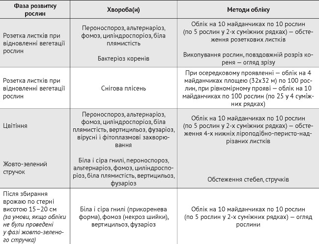Таблиця 1. Строки і методи обліку основних хвороб озимого ріпаку навесні