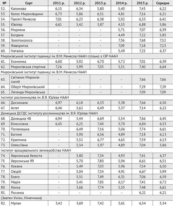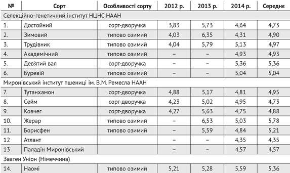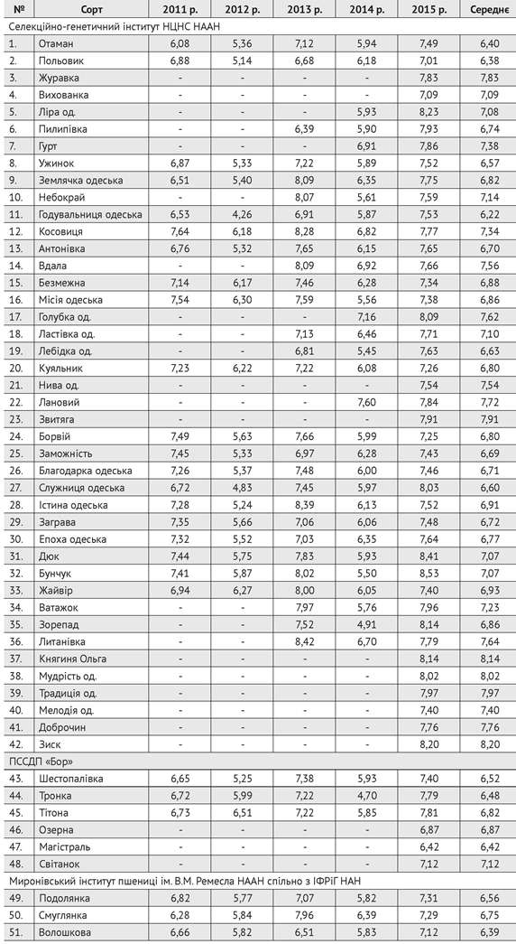 Урожайність сортів пшениці озимої м’якої на полігоні