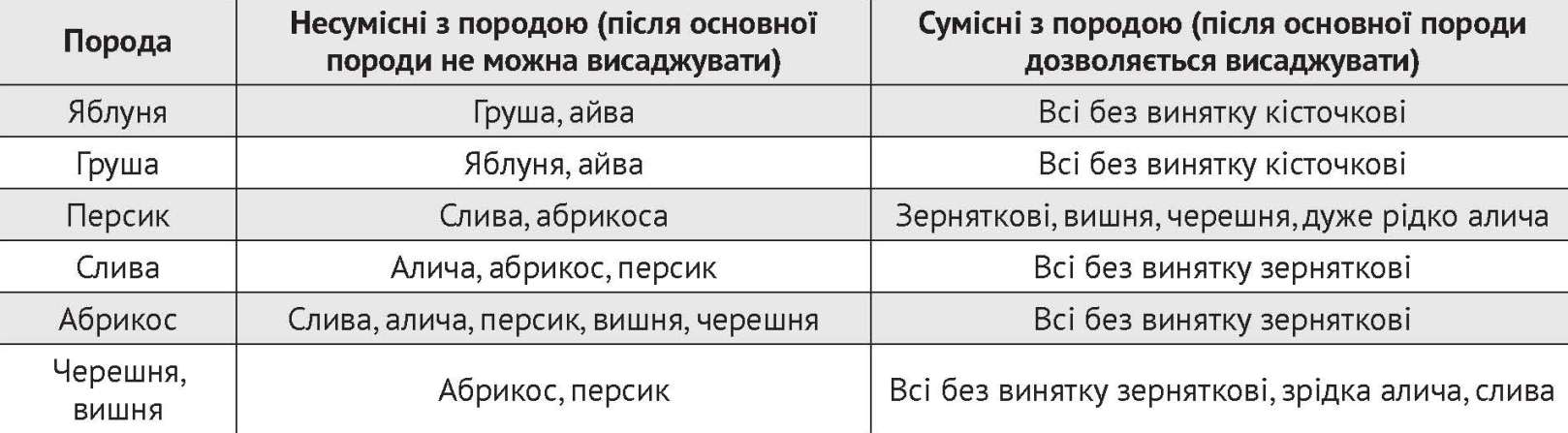 Таблиця 1. Несумісність і сумісність плодових порід при садозміні