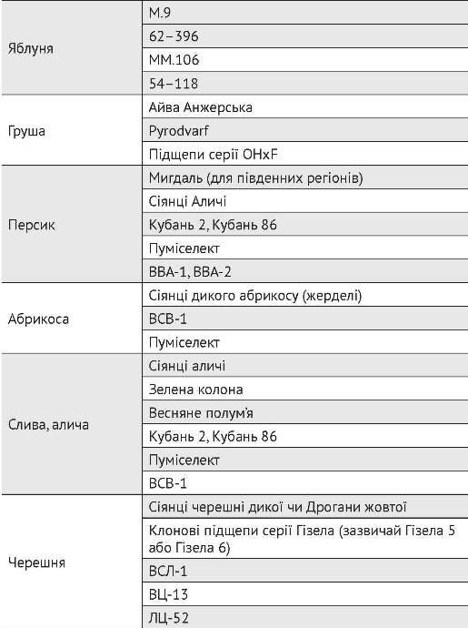 Таблиця 2. Чергування підщеп для створення насаджень монокультури