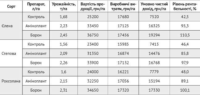 Результати досліджень свідчать про високу економічну ефективність при застосуванні біостимуляторів на посівах гречки. Так, за урожайності 2,45 т/га рівень рентабельності становить 110,5%.