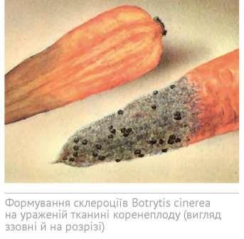 Шкідливість сірої гнилі на моркві аналогічна білій.
