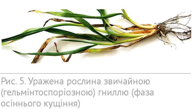 Збудники кореневих гнилей уражують кореневу і прикореневу частини стебла, часто провідну систему, внаслідок чого рослини стають недорозвинутими з жовтими або плямистими листками. У хворих рослин часто відмирають продуктивні стебла, або спостерігається ламкість стебел, пусто-, білоколосість, щуплість зерна. У зв’язку з істотним потеплінням осіннього періоду вегетації озимої пшениці більш ефективного дієвого захисту потребують посіви захисту від кореневих гнилей.