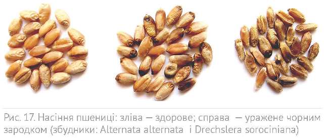 За високої температури (понад 24°С) і вологості повітря у період цвітіння-молочної стиглості суттєву шкоду пшениці спричиняє альтернаріоз, який проявляється у більшості випадків у вигляді «чорного зародка» зерна. Залежно від сорту інфікованність зерна збудниками хвороби може сягати до 45%. Тривалому перебуванню інфекції у зерні під час його зберігання сприяють низька вологість і помірна температура. Насіння з чорним зародком є фізіологічно недозрілим, має низьку енергію проростання і схожість. Рослини з такого насіння відстають у рості і розвитку. Висів такого насіння у ґрунт може бути причиною розвитку кореневої гнилі, відмирання або недорозвинення стебла, що призводить до зниження урожаю. Крім цього, збудники альтернаріозу в ураженому насінні продукують токсини, які небезпечні не тільки для рослини, але й для людини і тварин. За великої кількості зерна з чорним зародком борошно є токсичним, має темний колір, погіршуються його хлібопекарські якості.