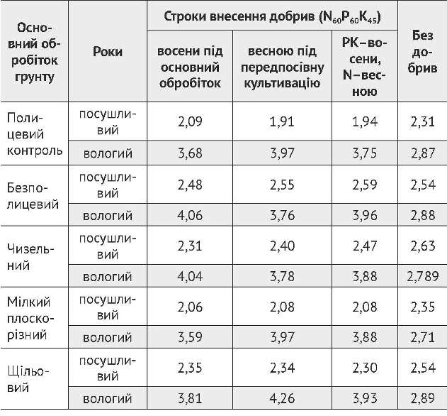 Таблиця 2. Вплив обробітку ґрунту й удобрення на урожайність