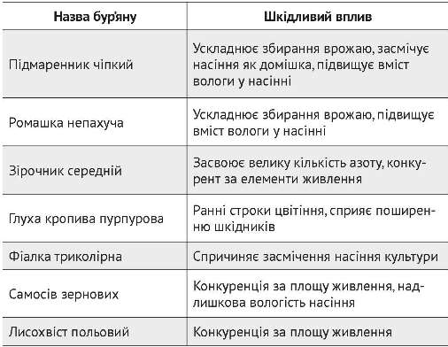 Таблиця. Негативний вплив бур’янів у посівах ріпаку