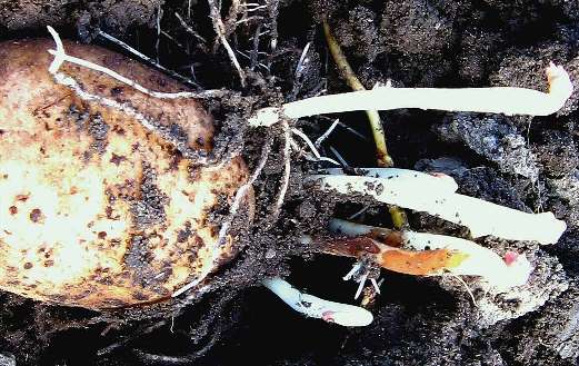 при проростанні уражених бульб картоплі