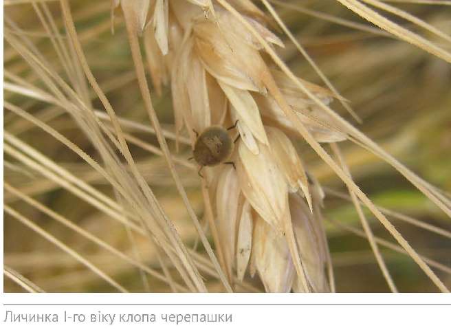 Нагадаємо, що хлібні злаки пошкоджують кілька видів хлібних клопів, які багато в чому схожі між собою, хоча є представниками різних родин: щитники-черепашки — Scutelleridae (шкідлива, маврська та австрійська черепашки) і пентатоміди — Pentatomidae (гостроголові клопи — гостроголова й носата елії). Найшкідливішим серед хлібних клопів є шкідлива черепашка (Eurygaster integriceps Put.), яка поширена в Україні у Степу й Лісостепу; пошкоджує пшеницю, рідше ячмінь, жито, овес.