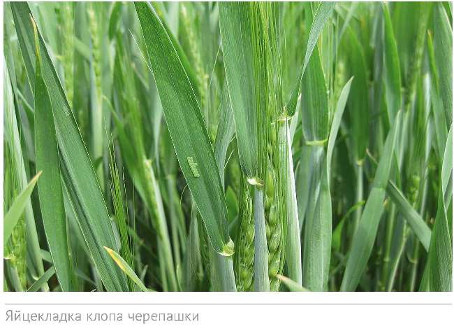 За умов запізнілих строків відродження і заселення полів фітофагами, найбільш висока захисна спроможність інсектицидів досягається у період від молочної до молочно-воскової стиглості зерна. Вказані фенологічні строки забезпечать захист посівів від супутніх із черепашкою видів шкідників трипсів, хлібних жуків, попелиць (мають значне поширення нинішнього року) тощо.