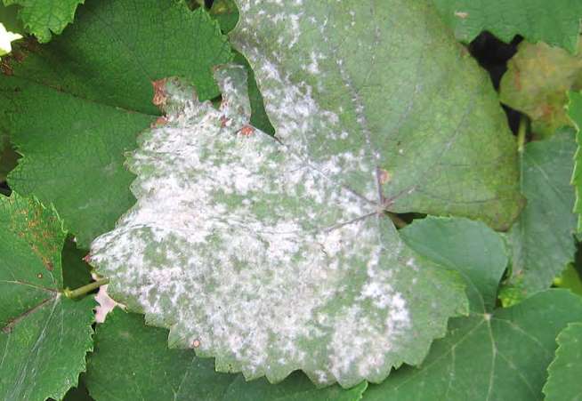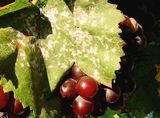 Уражена оідіумом лоза винограду