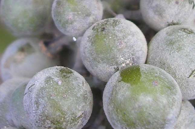 Уражені оідіумом ягоди винограду
