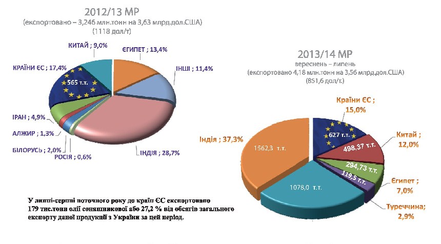 Наша соняшникова олія становить 60% у світовій структурі експорту. Основні погляди, звичайно, спрямовані на такого споживача, як Китай. Ще 3 роки тому ніхто не говорив про нього серйозно. Китайські представники довго і ретельно досліджували продукцію на наших підприємствах у Вінниці. Перша партія із 32 тис. т була поставлена у 2010 році. Тепер йдеться про 500 тис. т. За китайський ринок змагаються всі, хоча у нього й існують особливі вимоги. Але українські підприємства виконують всі вимоги, які виставляють країни-імпортери. Упродовж останніх 5 років жодної рекламації на нашу олію не надходило. Це свідчить, що наші виробники впровадили світові системи якості і поставляють продукцію, яка відповідає світовим вимогам якості та через це користується попитом.