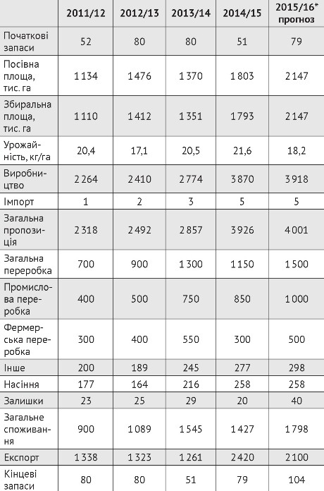 Нині соя є другою серед олійних культур у структурі посівів по Україні. Середня врожайність становить близько 17–19 ц/га, тоді як у найближчих конкурентів — 26 ц/га.