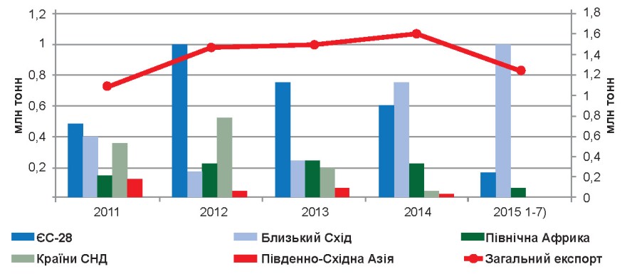 Змінюється і географія експорту. Донедавна основним покупцем був Європейський Союз, нині це Близький Схід — Туреччина та Іран (соєві боби та шрот), а також Китай, Польща й Іспанія (соєва олія).