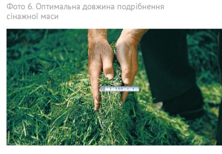 Що стосується довжини подрібнення зеленої маси для сінажу, то оптимальною вважається 3–4 см. Така довжина дозволяє якісно затрамбувати сінажну масу, а також повністю відповідає фізіологічним потребам жуйних тварин. Надто коротко подрібнена сінажна маса, звичайно ж, легше трамбується. Але варто пам’ятати, що кінцевою метою кормозаготівлі є не просто закласти в сінажну яму і затрамбувати, а отримати якомога більше надою з мінімальною собівартістю та зберегти здоров’я корів. Саме тому важливо зберегти структуру грубого корму. Надто довго нарізану масу дуже важко трамбувати. А в погано утрамбованій масі порушується процес бродіння сінажу, що веде до зниження якості корму. Довжина нарізки потребує ретельної уваги, адже погано затрамбована сінажна маса може коштувати господарству річного запасу корму.