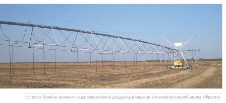 Полив на полях України у радянські часи робили широкозахватними дощувальними машина вітчизняного виробництва «Фрегат» і «Дніпро». Первомайським заводом «Фрегат» (Миколаївська обл.) і нині виготовляється саморухома дощувальна машина із такою ж назвою. Вона здатна поливати поля зі складним рельєфом. А рівномірність розподілу крапель дає можливість вносити рідкі й розчинні мінеральні добрива (тобто здійснювати фертигацію) одночасно з поливом.