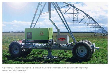 Фронтальні системи дощування від компанії Western Irrigation дозволяють поливати великі території меншою кількістю води, й при цьому ефективно управляти багатьма параметрами зрошення. У нашій країні їх поширює й обслуговує відомий дилер передових агротехнологій компанія АМАКО. Полив за допомогою систем Western Irrigation не призводить до вимивання поживних речовин ґрунту.