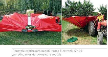 Однак нині будь-який агровиробник може вибрати техніку, яка дозволяє істотно знижувати вартість виробництва. Щодо горіхів, їх традиційно збирають шляхом удару об гілку довгими дерев’яними прутами. Для ції мети служать також струшувачі дерев — своєрідні вібратори, або плодозбиральні машини вібраційного типу. Вони навішуються на тракторець і працюють із пришляхової смуги або з міжрядь.