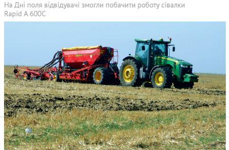 Під час Дня поля було продемонстровано ще один агрегат, про який зараз розмірковує господарство «Балкани». Мова йде про сівалку Rapid A 600C, яка так само здатна виконати сівбу швидко і ефективно. Ця машина спроможна працювати не лише по оранці, а й по високому фону пожнивних решток та по бур’янах.