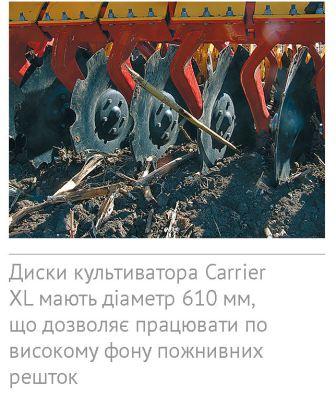 Від менших моделей Carrier цей культиватор вирізняється передусім його робочою шириною у 6,25 м. За словами Василя Лещенка, це щонайменше на 50 % дозволить зменшити час на підготовку поля, порівняно із застосуванням старого обладнання з шириною захвату в 4 м.