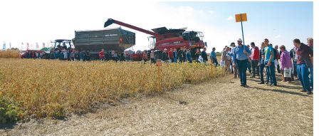 Поруч із цим дійством відвідувачі змогли оцінити посіви 6 сортів сої від компанії «Соєвий вік». Її представник наголосив, що найближчим часом «Соєвий вік» презентує гібриди з потенційною урожайністю 7 т/га.