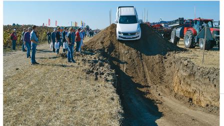 В кінці коридору між посівами стиглої кукурудзи на нашу групу чекало порожнє поле, в центрі якого було встановлено по дві «колії» зі штучних величеньких горбів і вибоїн — смуга перешкод для демонстрації обприскувачів. Цього року вона стала однією з найбільш складних у порівнянні з минулими роками та була покликана безжально виявити всі слабкі місця агрегатів і подарувати відвідувачам корисне та цікаве видовище. Не встиг ведучий повідомити про початок демонстрації, як, піднявшись угору, десятки камер націлились на смугу перешкод. Першим успішно випробували на міцність причіпний обприскувач UX 6200 від компанії Amazone, який до того встиг «намотати» в господарстві не одну сотню мотогодин. За ним елегантно спрацював причіпний агрегат Primus 35 від компанії Lemken. А далі численні телефонні камери, мильниці та професійні «дзеркалки» запрацювали на повну, адже настав час проявити себе самохідним обприскувачам. Смуга перешкод витиснула все з підвісок машин Patriot 3330 від Case IH та Raptor 3240 від компанії Berthoud, але так і не змогла суттєво зсунути їхні штанги з горизонтального положення. «Родзинкою» презентації став привезений цього року в Україну самохідний обприскувач LEEB 330 PT від Horsch, штанги якого працювали всього в 40 см від землі.