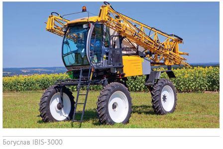 Оглянемо обприскувач самохідний «Ібіс 3000» (за міжнародним техпаспортом Boguslav IBIS-3000-24/28). Незалежні гідропневматичні передня й задня підвіски дозволяють йому розвивати робочу швидкість до 30 км/год. при стабільній роботі амортизаторів. Значний кліренс 1,8 м і змінювана ширина колії дозволяє ефективно обробляти технічні культури (ріпак, соняшник) на пізніх стадіях зростання. Гідравлічна штанга має ширину захвату 24 або 28 м, маятниковий механізм стабілізації та гідромеханічний пристрій для гасіння механічних коливань. Висота штанги регулюється у межах від 80 до 250 см. Робоча ємність бака для хімікалій становить 3 150 л. Продуктивність насоса — 285 л/хв.