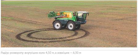 Та ось оператор вимикає обприскування та розвертає агрегат. Зробивши поворот, чотири колеса лишили на полі кола мінімальним радіусом 4,5 м, а максимальним — 6,3 м. Затихає двигун, розкладається широка гідравлічна драбина, і з кабіни виходить оператор Олександр Миколайчук. «З травня і до сьогодні (16 жовтня 2015 року) Пантера обробила майже 18 тис. га, — розповідає він, — вже тисячна мотогодина добігає. За цей час лише діафрагму на насосі поміняли. Кліренс і ширину колії тут можна змінювати без зупинки. Так, лише за декілька секунд кліренс машини зі 110 см підіймається до 170, а ширина колії змінюється із 1,8 до 2,6 м. Завдяки цьому ми змогли працювати по всьому: пшениці, кукурудзі, соняшнику, ріпаку, сої…».