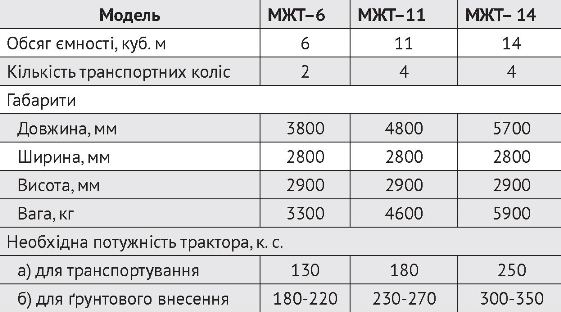 Ще краще підходить, мабуть, до цілей перевезення рідкого гною вітчизняна цистерна «Агрітон» (Львівська обл.) — металева ємність для перевезення й ґрунтового внесення рідкого гною (див. табл.). Ба більше: вона може бути агрегатована з причіпними важкими культиваторами шириною захвату від 5 до 9 м для внесенню рідкого гною.