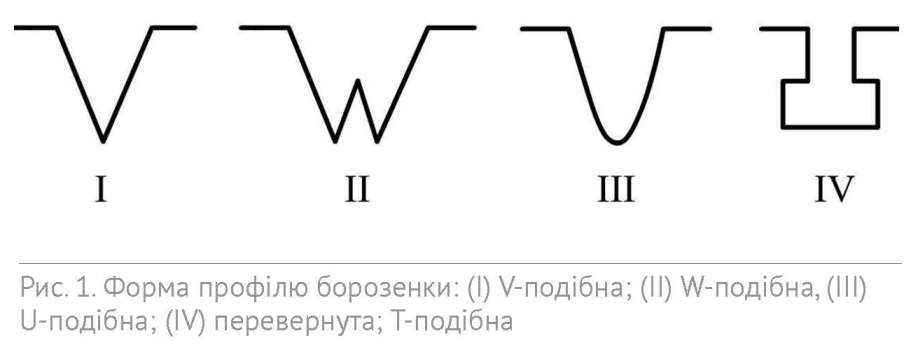 Найбільш розповсюдженими формами борозен, які створюються сошниками різних типів, є: V-подібна, W-подібна, U-подібна та перевернута Т-подібна (рис. 1). Також застосовуються варіанти сівби без створення борозни з розкидання по поверхні (поверхневий чи підґрунтовий висів).