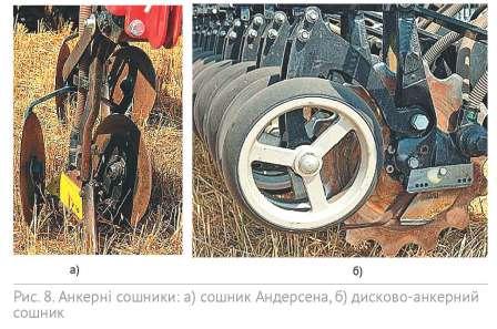 З моменту переходу на мінімальну технологію і по сьогодні на полях працюють сошником анкерного типу — так званим «сошником Андерсена» (рис. 8).