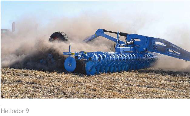 Виступ техніки Lemken розпочався з першої в Україні демонстрації роботи нового покоління коротких дискових борін — Heliodor 9. «Ця машина створена для швидкої та якісної роботи вслід за комбайном, — розповідає менеджер із продажу в Східному регіоні «Лемкен-Україна» Артем Якімін. — Вона перемішує рослинні залишки з ґрунтом, закриває капілярну вологу, провокує ріст падалиці та створює гарний мульчувальний шар. Останнє є дуже важливим, адже, як відомо, мульча добре віддзеркалює сонячне світло, завдяки чому зменшується випаровування вологи з ґрунту».