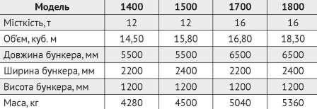 Таблиця. Технічні характеристики трейлерів «Білсма Геркулес» (Bіjlsma Hercules)