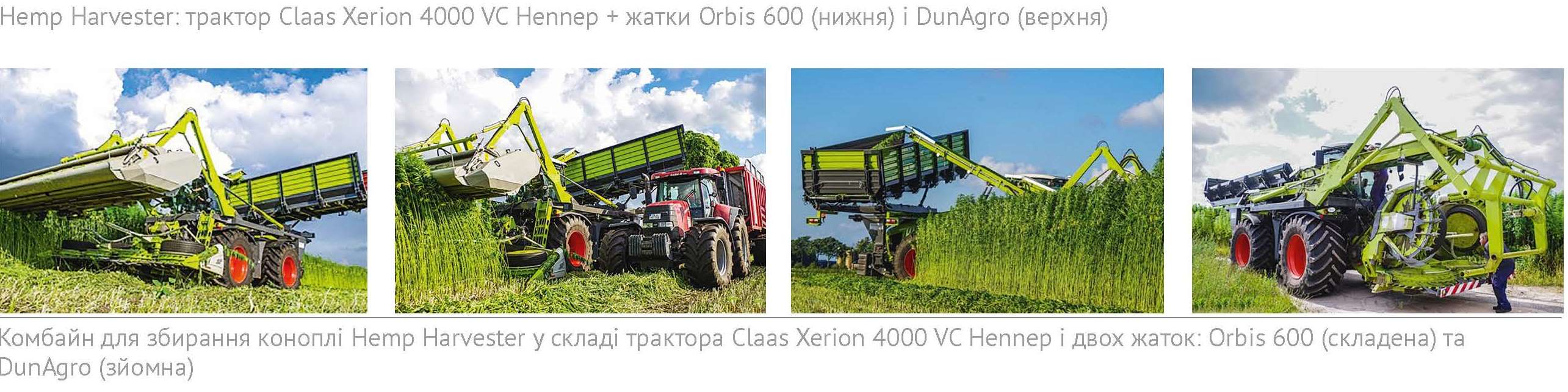 Ефективний збиральний комбайн коноплярів Hemp Harvester у складі трактора Claas Xerion 4000 VC Hennep і жатки Orbis 600 (без верхньої жатки DunAgro) призводить до думки про те, що не завжди варто поспішати подрібнювати біомасу «в суспензію і вологий пил»…