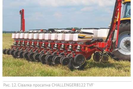 Випробування сівалки CHALLENGER8122 TVF (рис. 12) проводилось під час сівби кукурудзи на полях із традиційною системою обробітку грунту. Поля характеризувались дерново-підзолистим легкосуглинковим ґрунтом із вологістю від 17,8 до 19,7% і твердістю від 0,6 до 1,3 МПа. Рельєф поля рівнинний, мікрорельєф рівний. Глибина розпушеного шару ґрунту знаходилася у межах від 10 до 12 см. У фракційному складі розпушеного ґрунту переважали дрібні грудки розміром до 10 мм включно.