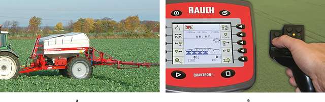 Рисунок 4. Тукова сівалка (а) та компютер QUANTRON (б)