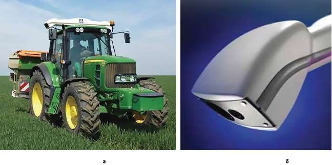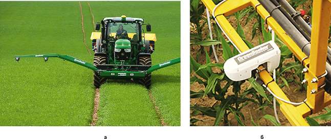 Рисунок 2. Розкидач мінеральних добрив, обладнаний N-Sensor (а),