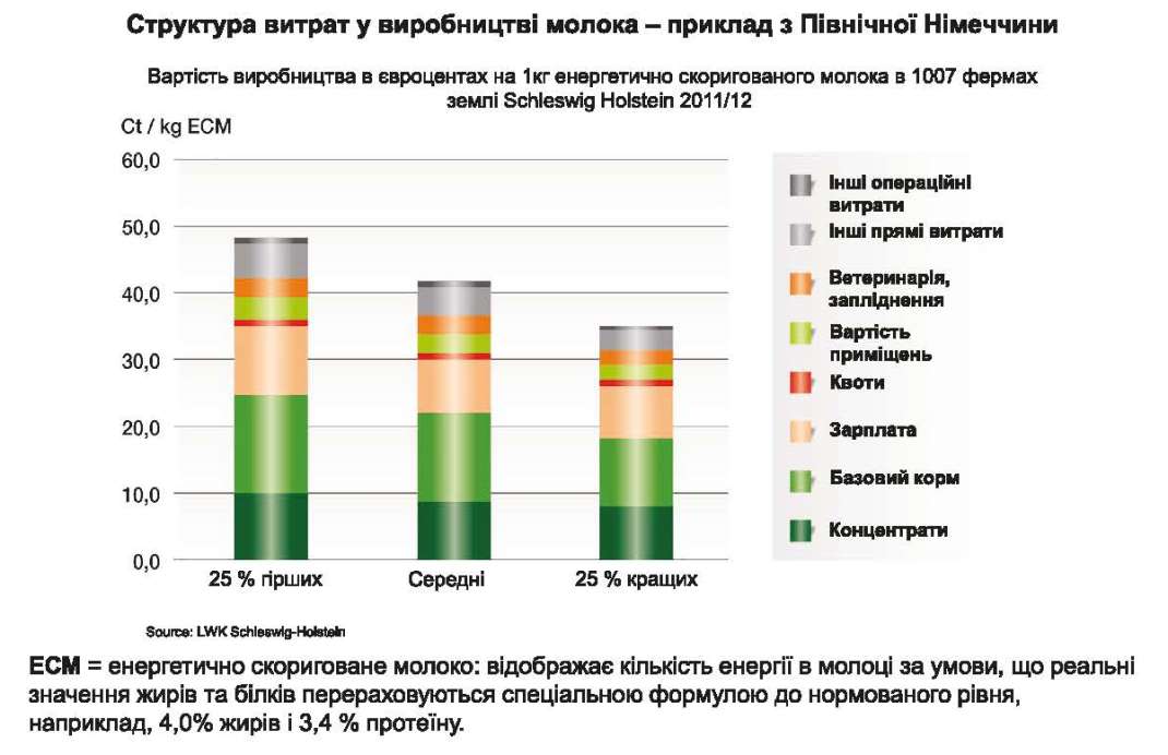 Готовність витрачати на корми половину всієї вартості пояснюється тим, що рівень та якість годівлі приблизно на 65–70% визначають продуктивність ВРХ і собівартість виробництва тваринницької продукції, безпосередньо впливають на здоров’я і відтворювальну здатність тварин. Корова синтезує молоко виключно з того природного рослинного матеріалу, який споживає, а кількість та якість молока залежить не тільки від того, скільки тварина з’їдає кормів по масі, але також від складу і збалансованості добової дієти.
